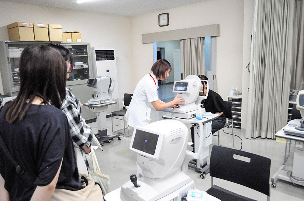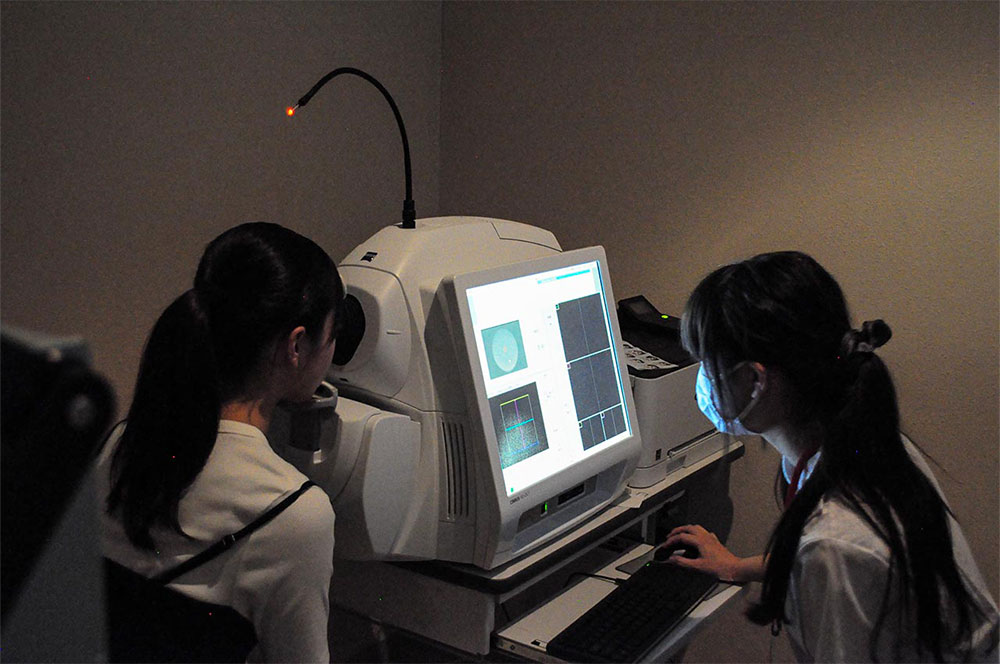 視力検査、屈折検査、OCT検査(光干渉断層計を用いた網膜の断層画像検査)など、多様な検査器具や検査方法をご紹介。視能訓練士の重要な役割である、視覚に障がいのある患者さんへの適切な視力測定と日常生活を支えるサポートについて説明しました。