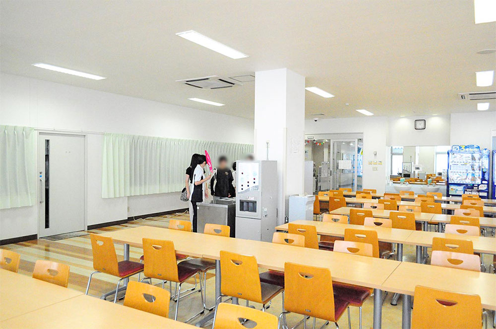 在学生の案内により、大講義室、食堂、運動場など、学内の様々な施設を紹介しました。