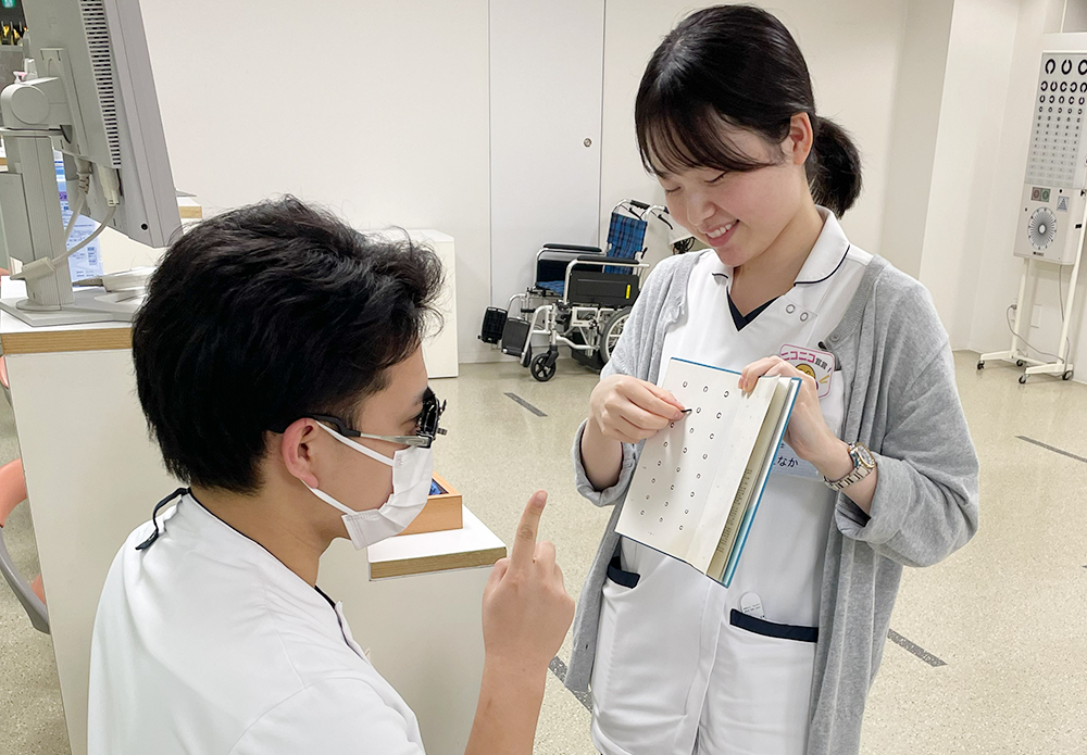 平成医療短期大学の講義では視能訓練士としての専門知識や技術を学ぶだけでなく、臨床現場で役立つ思考力も高めることができます。「必要な検査は何か、検査結果から何が読み取れるか」とよく考える力は臨床現場でも役立っています。